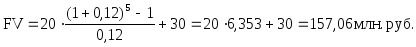Способ 1. Выпишем уравнение эквивалентности, используя дату последнего платежа как дату сравнения. На эту дату накопленная сумма платежей равна итоговой сумме обыкновенного аннуитета, поэтому