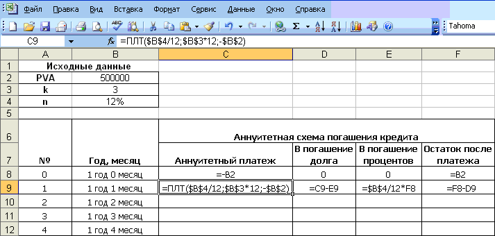 Мы имеем R = 7687614 ,m = 1,p =2 ,i = 4,5 % . | |||||||||