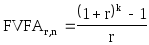 Если функции составных платежей представить в явной форме и выполнить упрощающие преобразования, тогда получим S = R ((1+i)п + (1+i) Сумма в скобках этого выражения является геометрической прогрессией с q членами, первый член равен (1+i)п , и знаменателем (1+i)п . Используя формулу для суммы геометрической прогрессии, мы получим