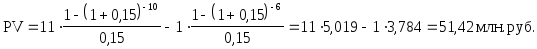 Из уравнения (6) имеем R = 1000000 / s1 4 4 % = 1000000 ? 4,059510 = 4059510 рб . Аннуитет продолжается в течение пяти периодов начисления, поэтому S =R s5 4 % = 4059510 ? 5,41632256 = 21987615 рб. 69 ![]() ПРИМЕР 2 Найти настоящую стоимость серии полугодовых платежей по 5 млн рб в течение 8 лет, первый платеж в конце пятого года, если норма процентаj4 = 5% . РЕШЕНИЕ Снова изображаем исходные данные на сравнительной
