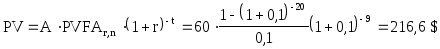 Способ 2. Первый платеж можно рассматривать как выплату наличными, а остальные 17 платежей считать обыкновенным аннуитетом со сроком,