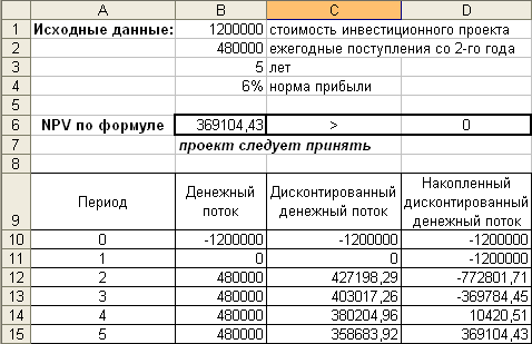 следовательно, ставку, равную 15%, можем использовать для определения внутренней