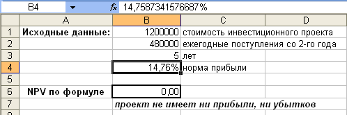 формулы для ячейки В4 можем увидеть точное значение внутренней ставки