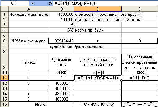 чистого приведенного дохода, который предусматривает дисконтирование денежных