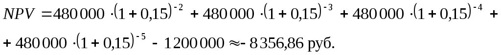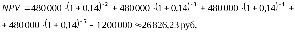 равна 14,80%, т.е. при данной ставке вложения окупаются, но не приносят