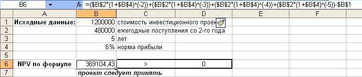формула для расчета которого введена в ячейку В6, приняла нулевое значение.