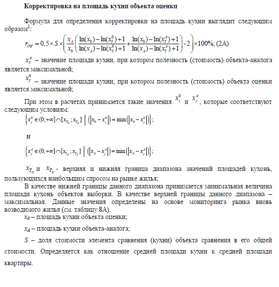 КОРРЕКТИРОВКА НА ПЛОЩАДЬ КУХНИ при оценке стоимости квартиры (фрагмент из отчета оценщика...)
