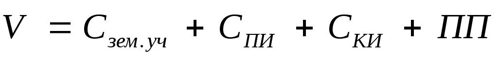 складывается из стоимости земельного участка и стоимости улучшений (см. формулу