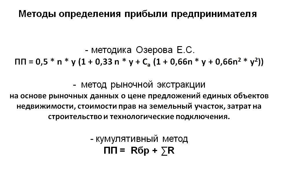 расчет прибыли предпринимателя по методике Озерова Е.С.