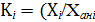 bi– показатель степени, отражающий силу влияния