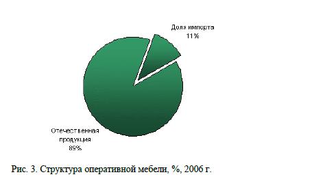 Следует отметить, что значительно изменилась структура рынка офисной мебели. В 2005-2006 гг. на долю продукции отечественных производителей пришлось 50-60% рынка по сравнению с аналогичным показателем 1995-1996 гг., когда большую часть рынка занимала мебель импортного производства.