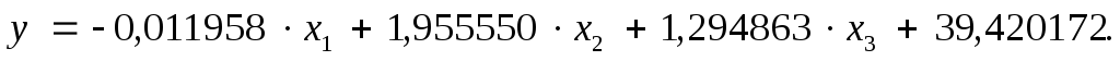 Из табл.39 возьмем коэффициенты уравнения. В итоге линейное