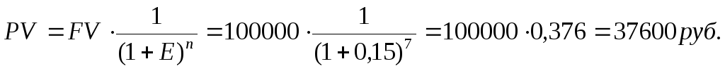 средств с учетом заданного процента. При применении фактора текущей стоимости